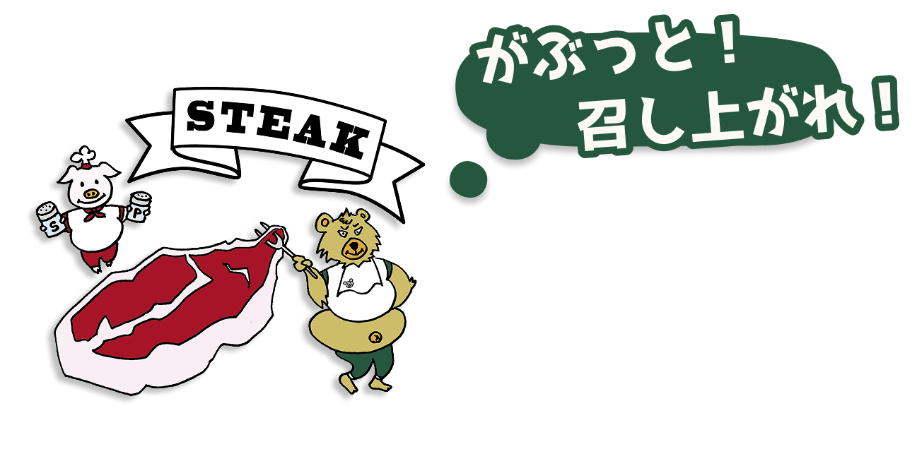 ファミリーステーキがぶっとごっくんのステーキ料理
